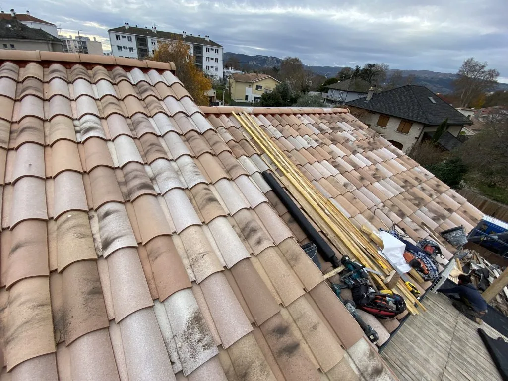 Cette maison présentait des signes de vieillissement avancé de sa toiture. Les tuiles étaient fissurées, certaines s’étaient détachées, et des infiltrations d’eau avaient commencé à endommager la charpente. Une rénovation était donc nécessaire.